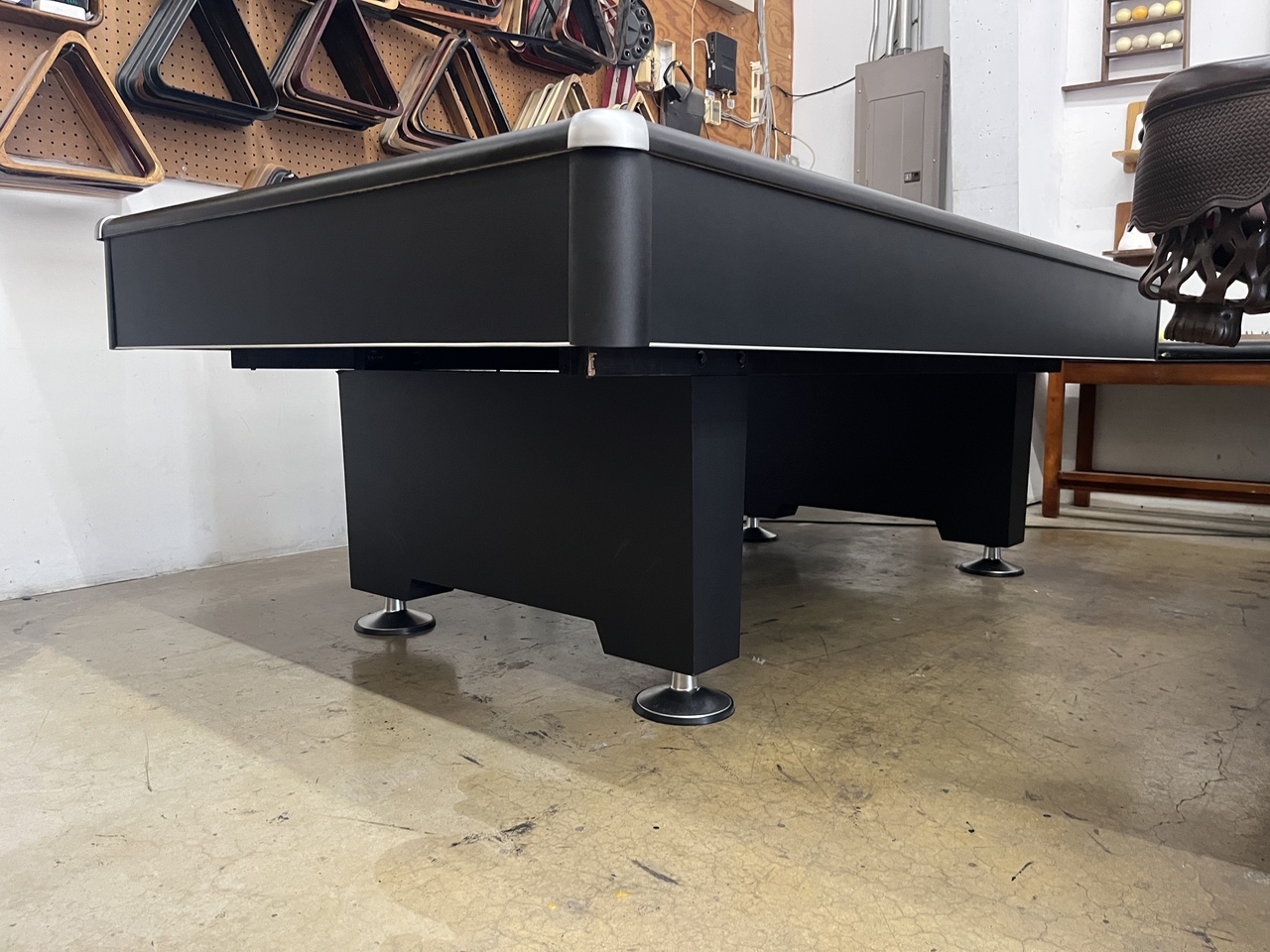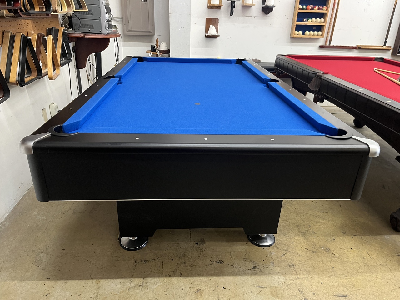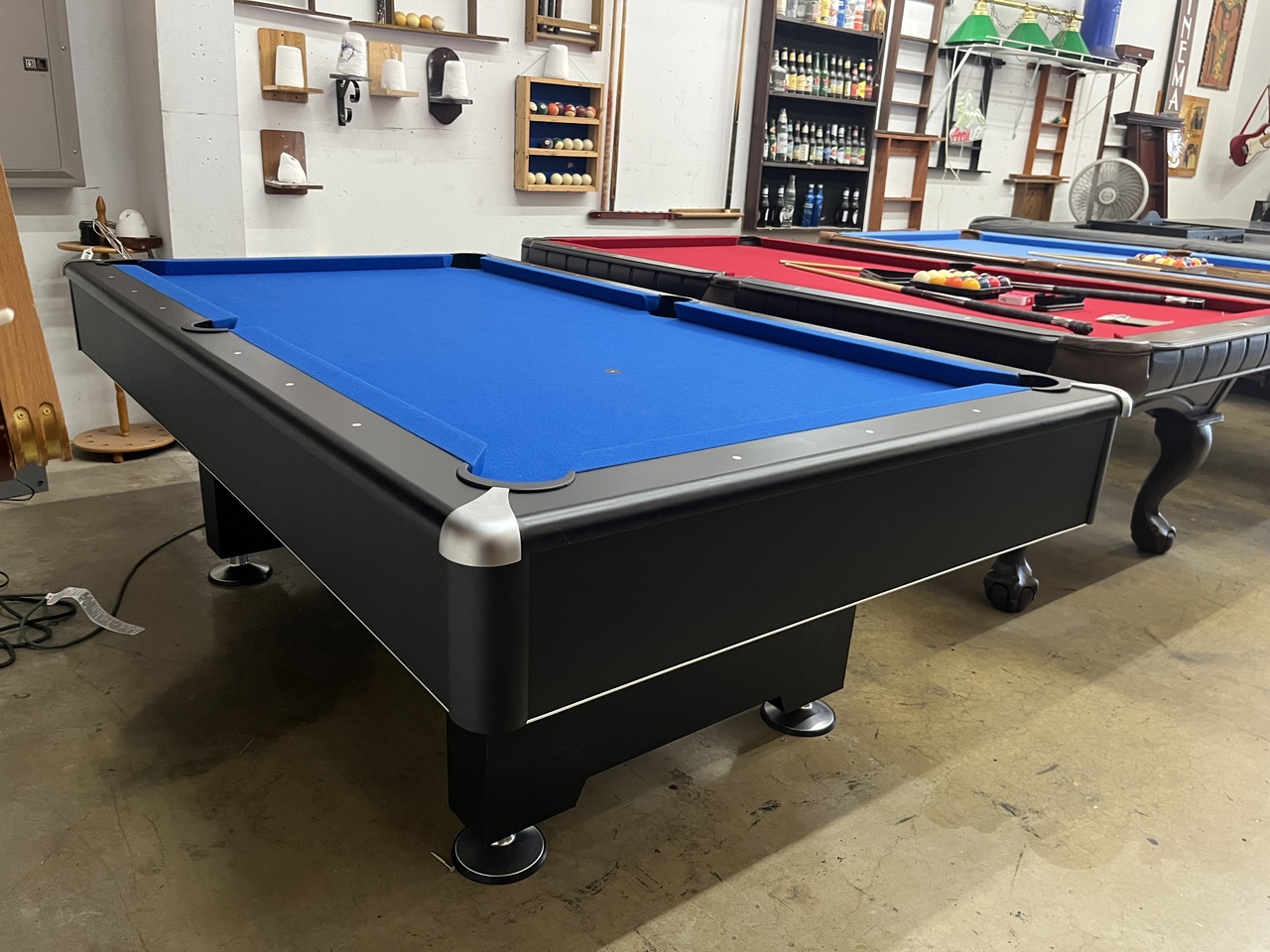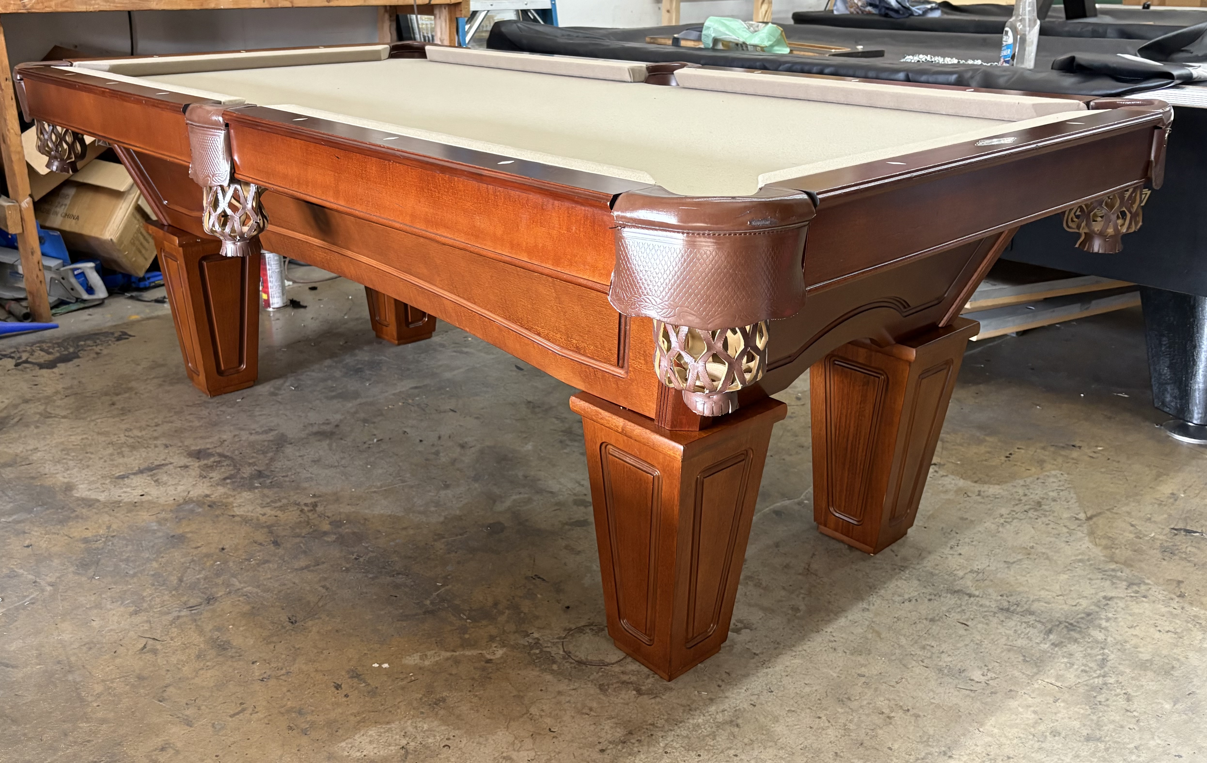 All of our pre-owned pool tables go through an intensive inspection process when they first arrive. We start from the leg casters, to the legs, frame, slate, rails, pockets, cushions and felt. The pool tables are cleaned up, some are sanded and re-stained, frame parts are repaired or replaced if need be. The slates are inspected for any cracks or breaks and are repaired according to their condition. Cushions are always tested for true accurate bounce and are replaced if needed. Leather or plastic pockets are also repaired or re-placed depending on their condition. The cloth is replaced on about 80% of the tables that come though our shop as well. All of our Used pool tables also include: Local delivery ( Millage fees apply on out of town deliveries), Professional Installation (stairs fees apply if any), All Accessories (Balls, Cues, Felt Brush, Matching Color Chalk, Bridge and Wall Mount Rack), and New Cloth by Championship.